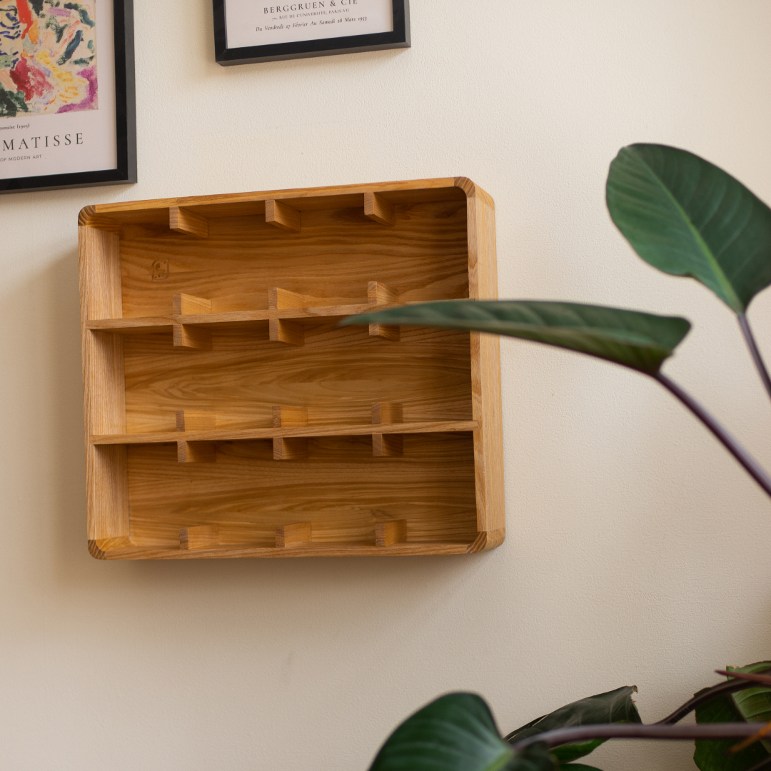 — Массив ясеня. 12 ячеек (3×4). Отделка маслом с твердым воском. Размер полки: 41×47×11.5 см (В×Ш×Г) Размер ячейки: 12×10×10 см (В×Ш×Г) — Полка изготовляется по предзаказу, отправка через 7-10 дней после оформления. Заказы отправляются из Санкт-Петербурга, стоимость доставки мы рассчитываем после оформления заказа.