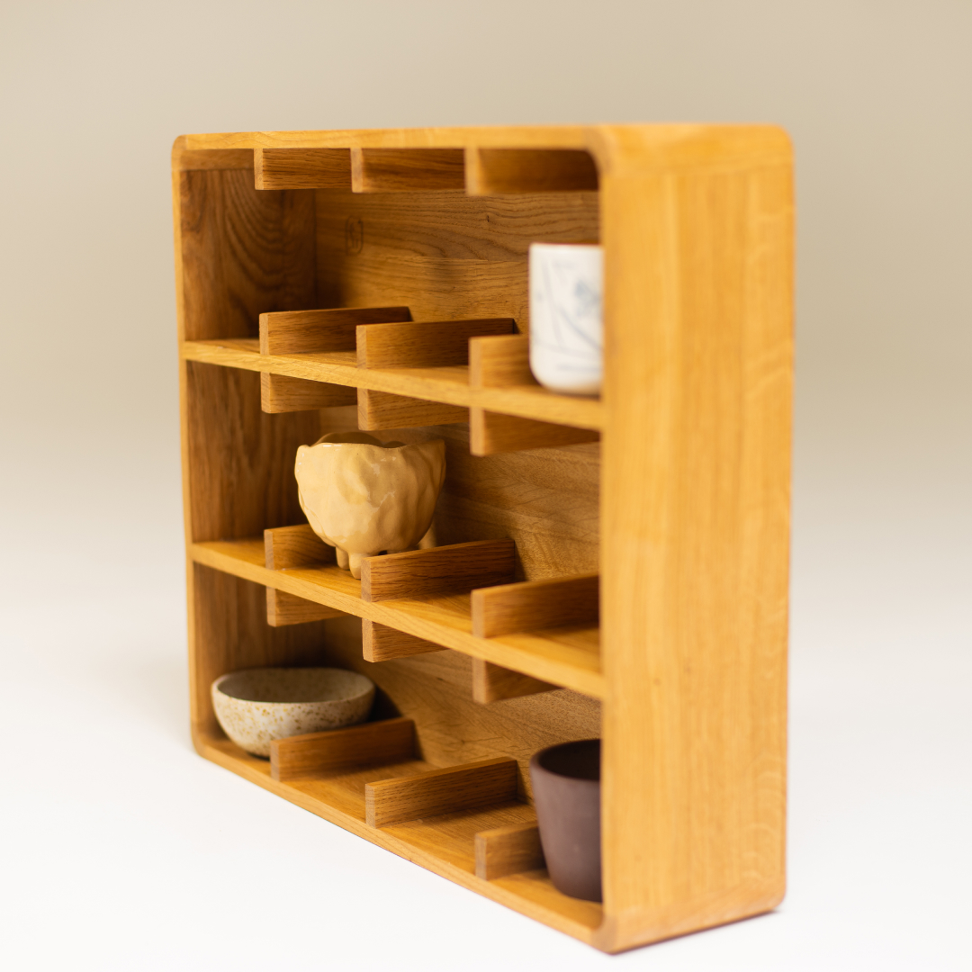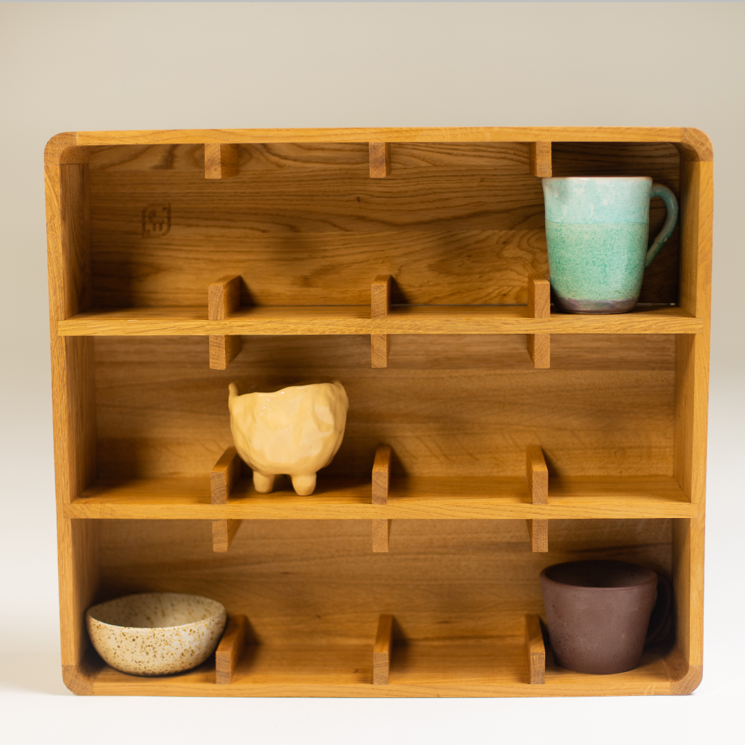 — Массив дуба. 12 ячеек (3×4). Отделка маслом с твердым воском. Размер полки: 41×47×11.5 см (В×Ш×Г) Размер ячейки: 12×10×10 см (В×Ш×Г) — Полка изготовляется по предзаказу, отправка через 7-10 дней после оформления. Заказы отправляются из Санкт-Петербурга, стоимость доставки мы рассчитываем после оформления заказа.